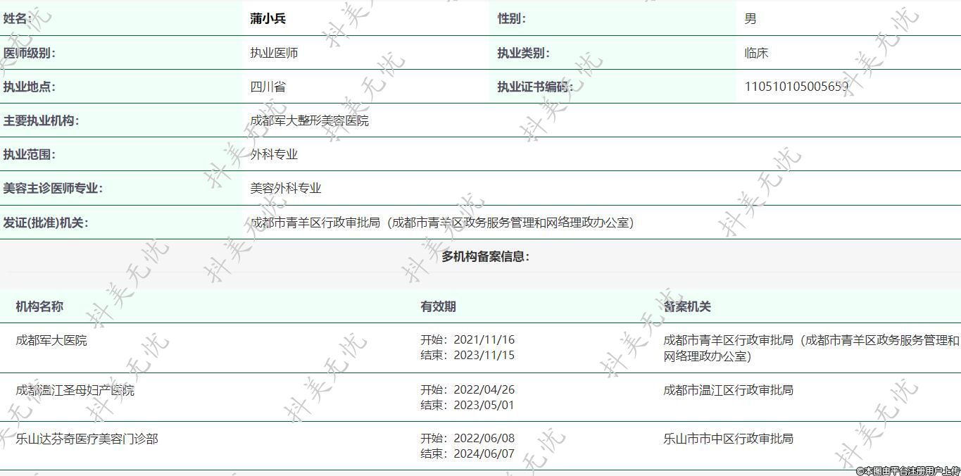 主要執(zhí)業(yè)機(jī)構(gòu):成都軍大整形美容醫(yī)院