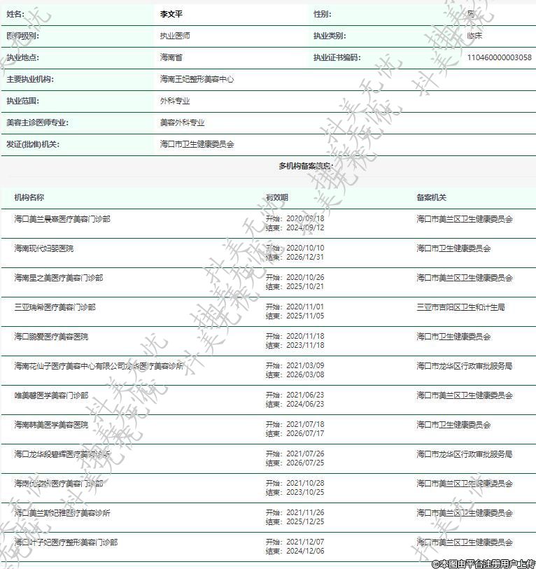 主要執(zhí)業(yè)機構(gòu):海南王妃整形美容中心