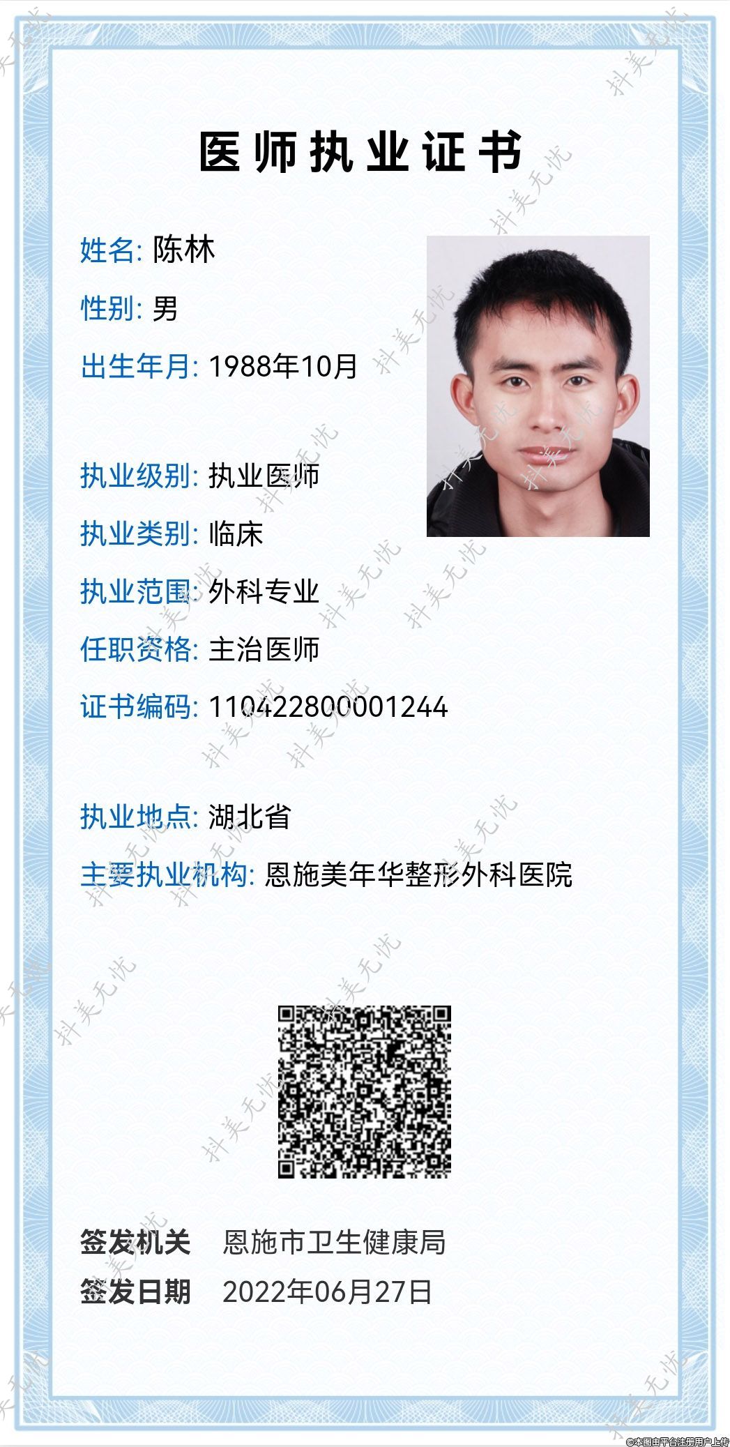原恩施州中心醫(yī)院美容整形燒傷外科執(zhí)業(yè),恩施美年華醫(yī)療美容醫(yī)師