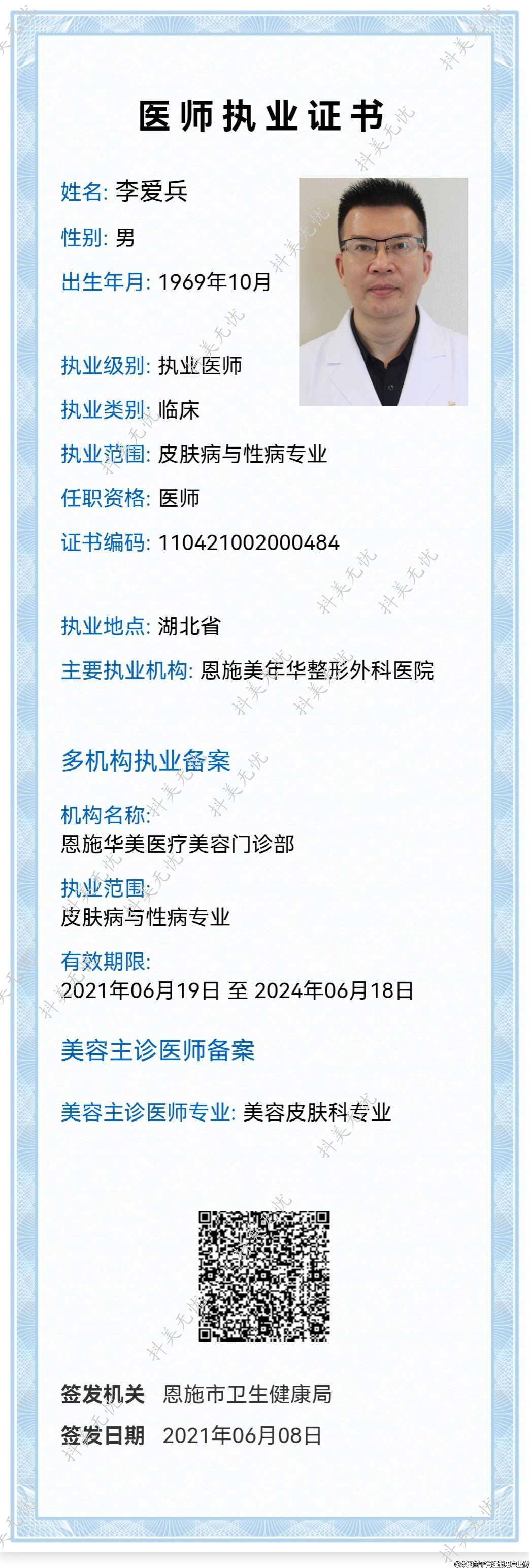 主要執(zhí)業(yè)機(jī)構(gòu):恩施美年華整形外科醫(yī)院