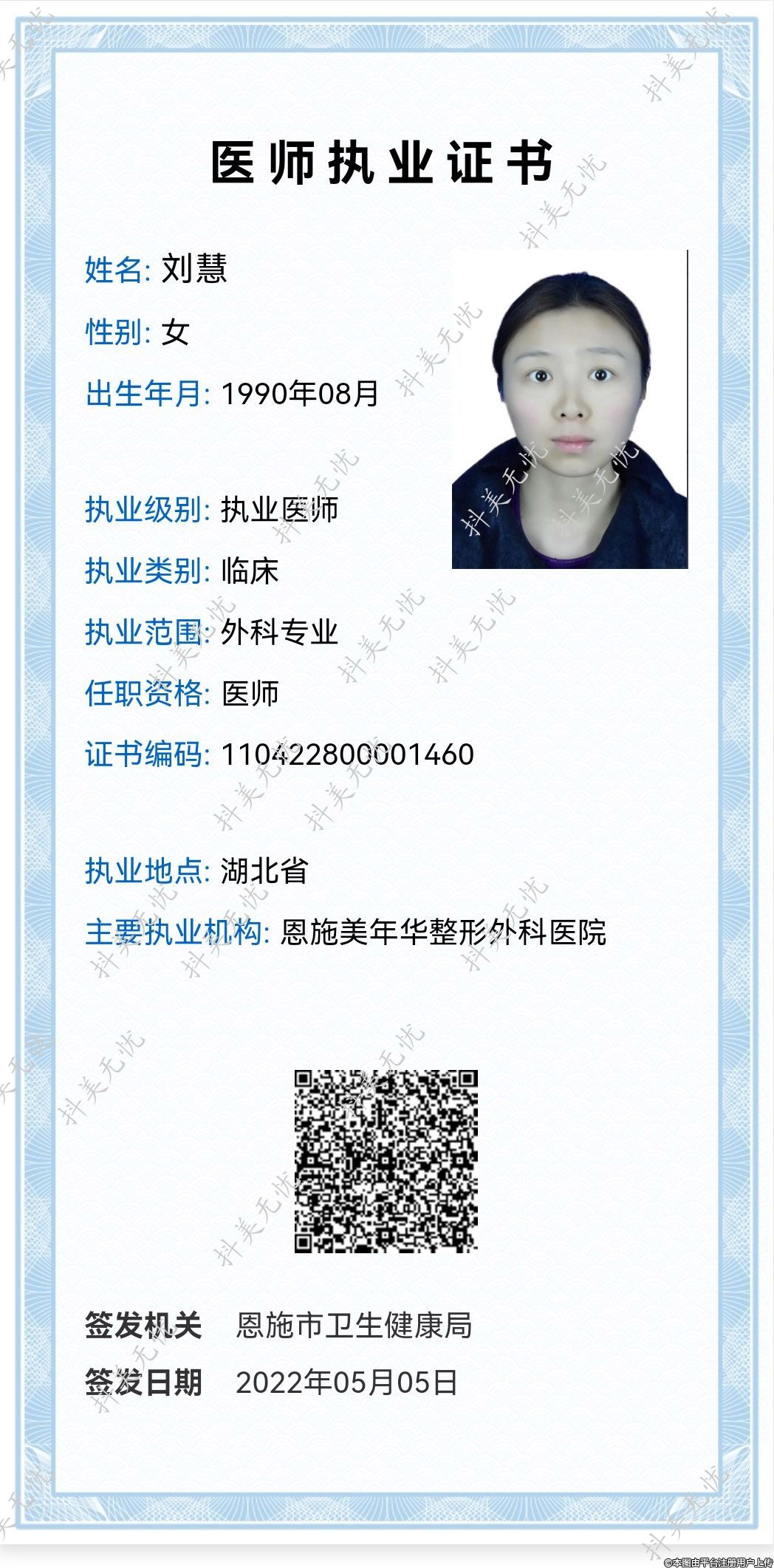 曾在重慶華美執(zhí)業(yè),恩施美年華醫(yī)療美容醫(yī)師