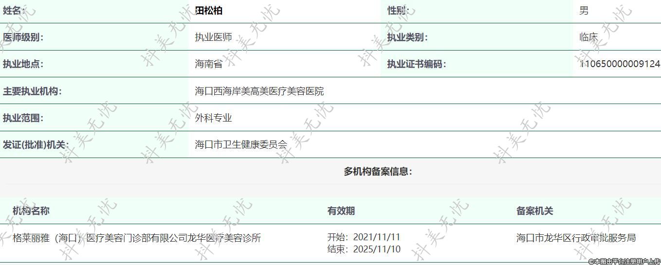 主要執(zhí)業(yè)機構(gòu):??谖骱0睹栏呙泪t(yī)療美容醫(yī)院