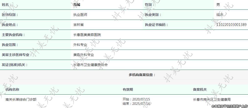 主要執(zhí)業(yè)機構(gòu):長春醫(yī)美美容醫(yī)院