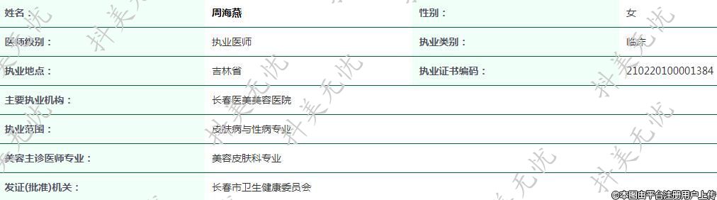 現(xiàn)任長春醫(yī)美美容醫(yī)院執(zhí)業(yè)醫(yī)師