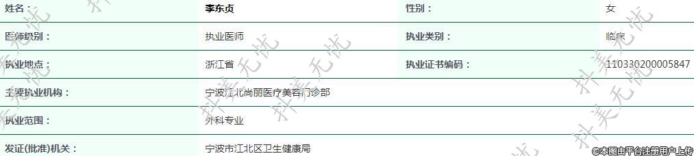 寧波尚麗醫(yī)療執(zhí)業(yè)醫(yī)師