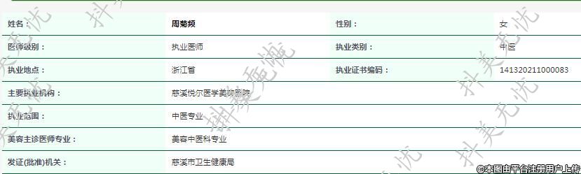 主要執(zhí)業(yè)機構:慈溪悅爾醫(yī)學美容醫(yī)院