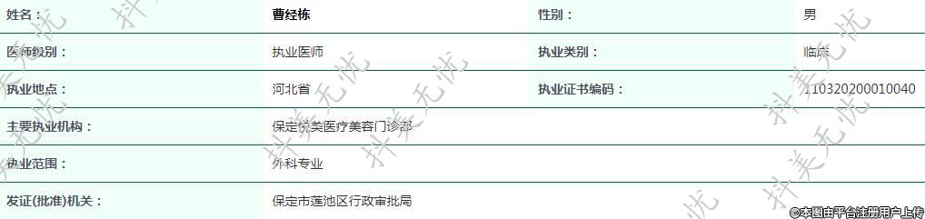 現(xiàn)任保定悅美執(zhí)業(yè)醫(yī)師