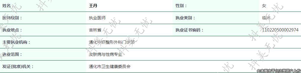 現(xiàn)任通化中妍執(zhí)業(yè)醫(yī)師