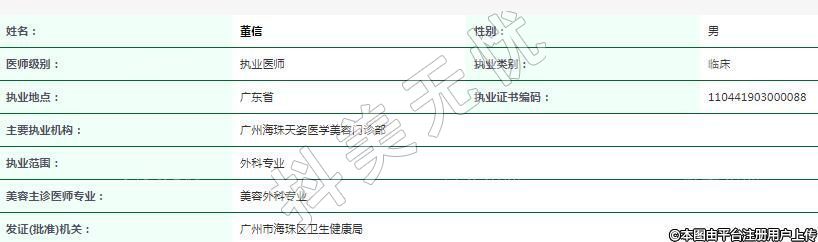 主要執(zhí)業(yè)機(jī)構(gòu):廣州海珠天姿醫(yī)學(xué)美容門診部