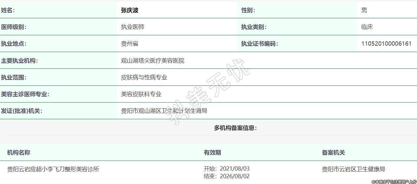 機(jī)構(gòu)名稱:貴陽云巖應(yīng)超小李飛刀整形美容診所