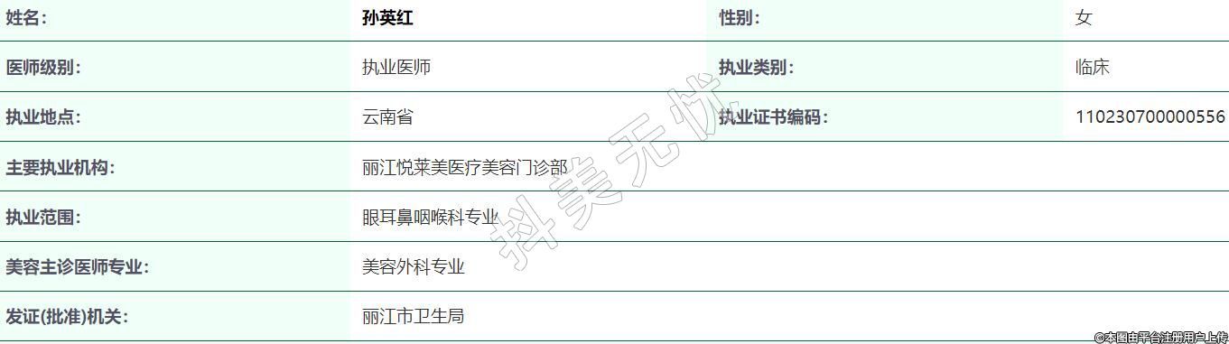 主要執(zhí)業(yè)機構(gòu):麗江悅?cè)R美醫(yī)療美容門診部