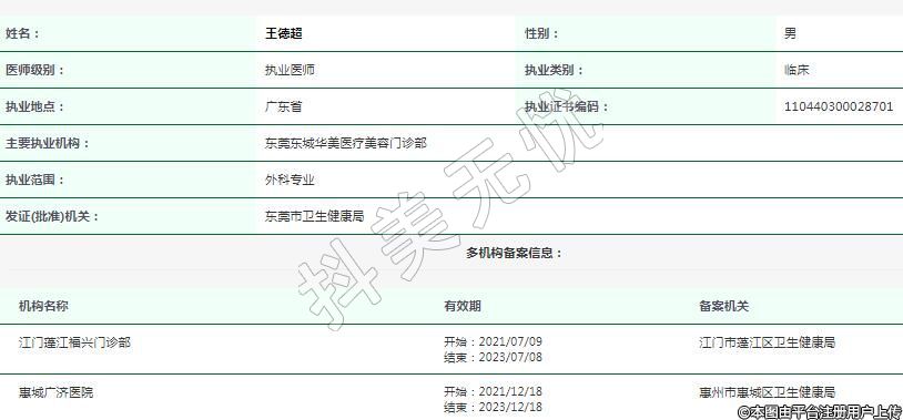 主要執(zhí)業(yè)機構:東莞東城華美醫(yī)療美容門診部