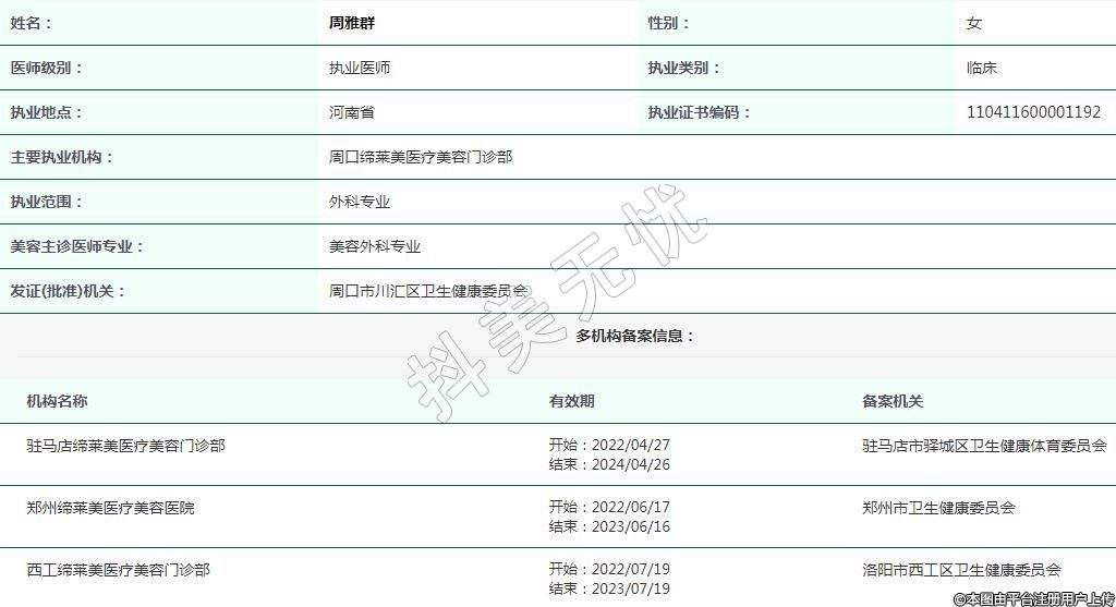 駐馬店締萊美執(zhí)業(yè)醫(yī)師