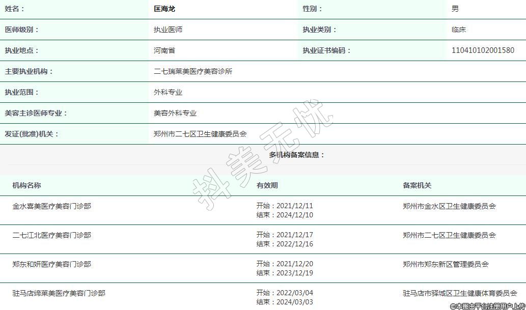 駐馬店締萊美執(zhí)業(yè)醫(yī)師 -