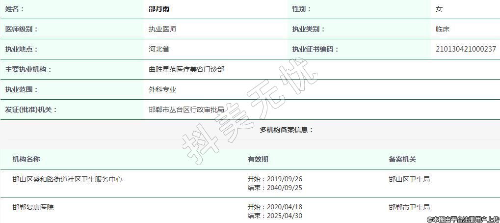 主要執(zhí)業(yè)機構(gòu):曲勝星范醫(yī)療美容門診部