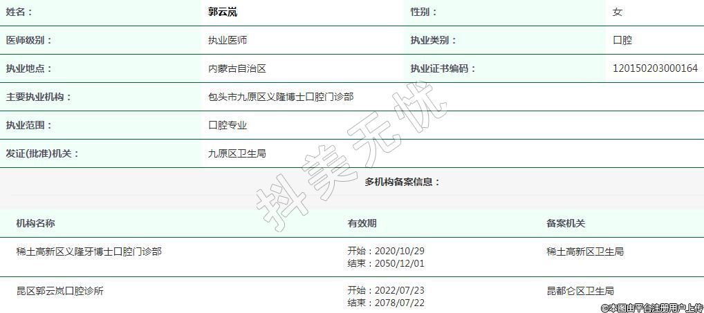 昆區(qū)郭云嵐口腔執(zhí)業(yè)醫(yī)師 -