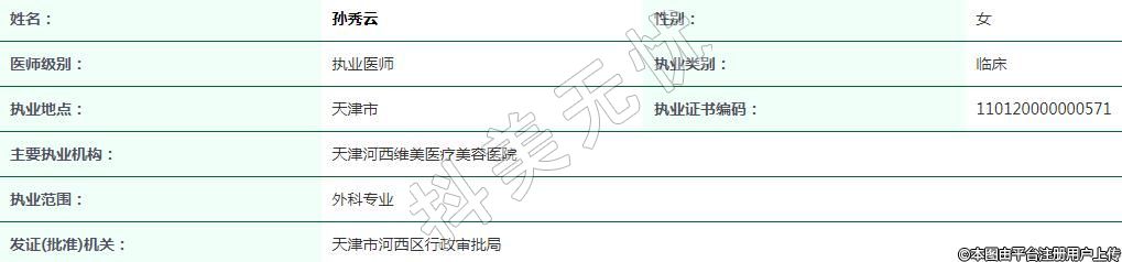 主要執(zhí)業(yè)機(jī)構(gòu):天津河西維美醫(yī)療美容醫(yī)院