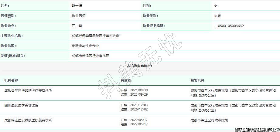 主要執(zhí)業(yè)機構(gòu):成都武侯華星晶膚醫(yī)療美容診所