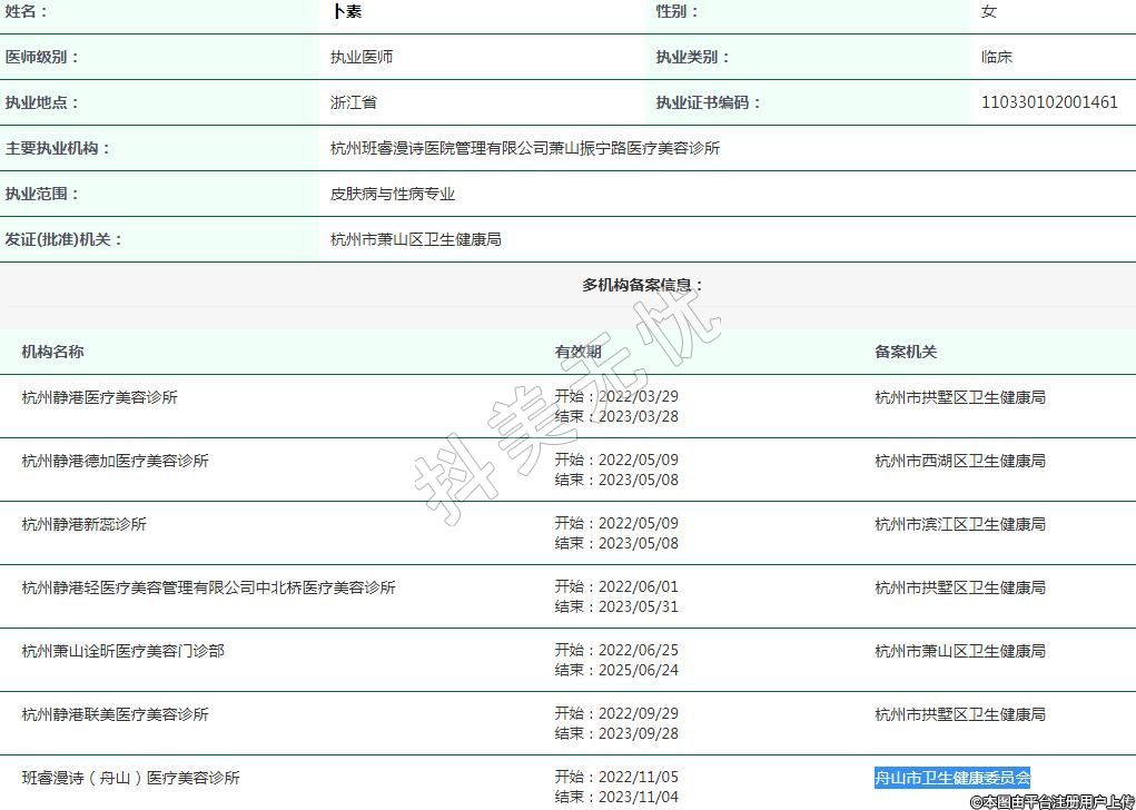 主要執(zhí)業(yè)機構:杭州班睿漫詩醫(yī)院管理有限公司蕭山振寧路醫(yī)療美容診所