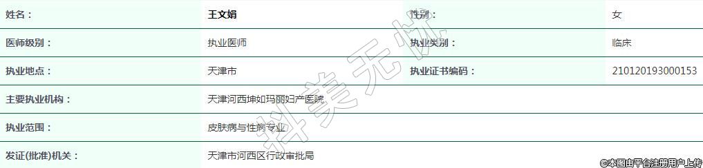 現(xiàn)任天津河西坤如瑪麗醫(yī)療美容執(zhí)業(yè)醫(yī)師