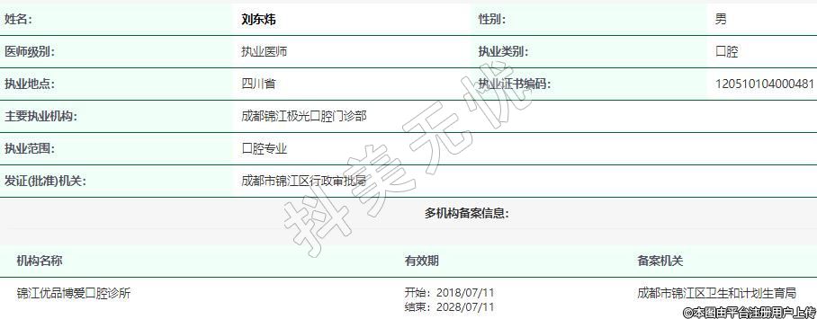 主要執(zhí)業(yè)機構:成都錦江極光口腔門診部