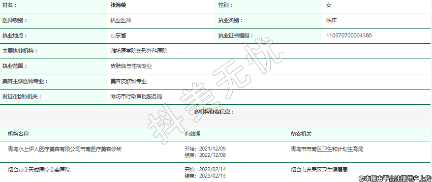 機(jī)構(gòu)名稱:青島水上伊人醫(yī)療美容有限公司市南醫(yī)療美容診所