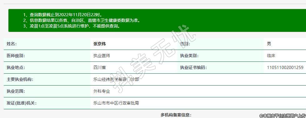 主要執(zhí)業(yè)機(jī)構(gòu):樂(lè)山經(jīng)緯醫(yī)學(xué)美容門(mén)診部