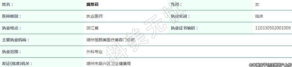 湖州恒顏美醫(yī)療美容執(zhí)業(yè)醫(yī)師