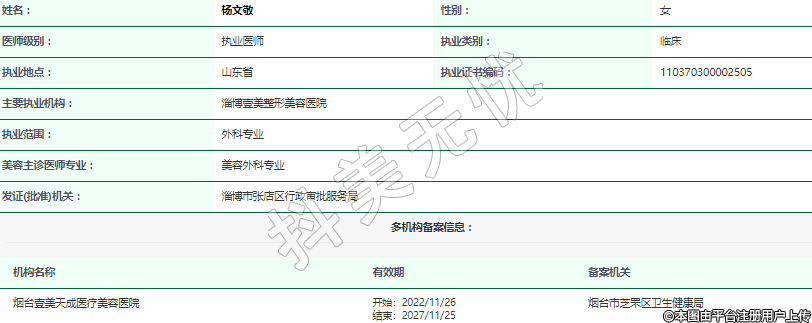 主要執(zhí)業(yè)機(jī)構(gòu):淄博壹美整形美容醫(yī)院