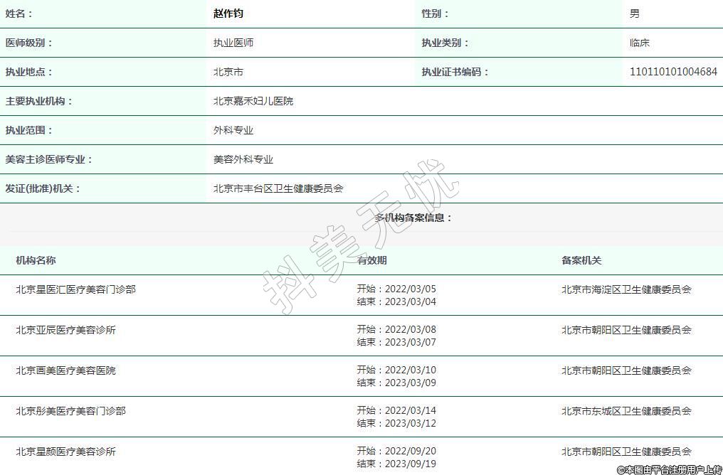 北京亞辰醫(yī)療美容執(zhí)業(yè)醫(yī)師