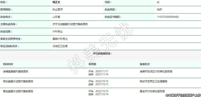 主要執(zhí)業(yè)機(jī)構(gòu):濟(jì)寧任城壹美天成醫(yī)療美容醫(yī)院