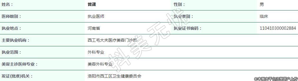 洛陽毛大夫醫(yī)療美容執(zhí)業(yè)醫(yī)師