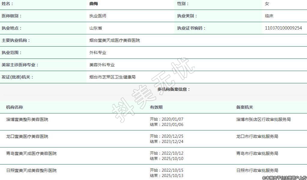主要執(zhí)業(yè)機(jī)構(gòu):煙臺壹美天成醫(yī)療美容醫(yī)院