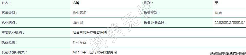 主要執(zhí)業(yè)機構:煙臺青韓醫(yī)療美容醫(yī)院