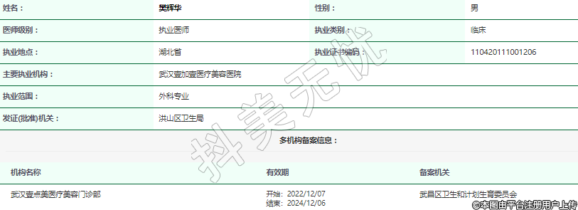 主要執(zhí)業(yè)機(jī)構(gòu):武漢壹加壹醫(yī)療美容醫(yī)院