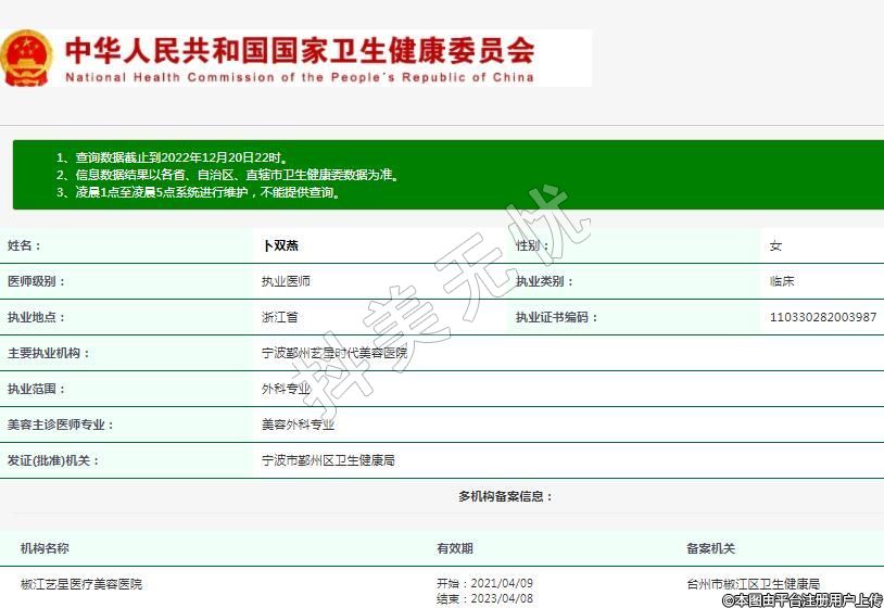 主要執(zhí)業(yè)機(jī)構(gòu):寧波鄞州藝星時(shí)代美容醫(yī)院