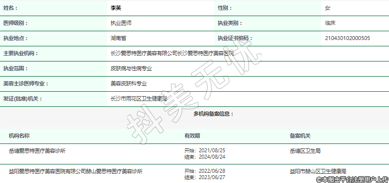 主要執(zhí)業(yè)機構(gòu):長沙愛思特醫(yī)療美容有限公司長沙愛思特醫(yī)療美容醫(yī)院
