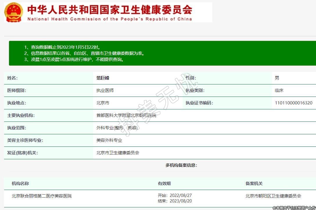 執(zhí)業(yè)范圍:外科專業(yè)(整形、美容)