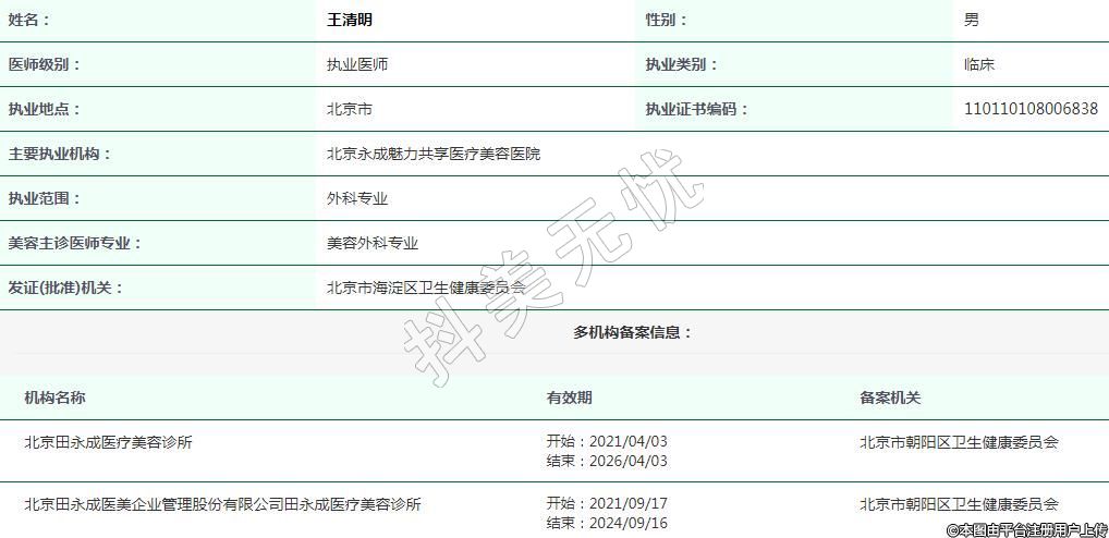 北京田永成醫(yī)療美容執(zhí)業(yè)醫(yī)師 -
