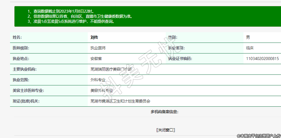 主要執(zhí)業(yè)機構(gòu):蕪湖瑞麗醫(yī)療美容門診部