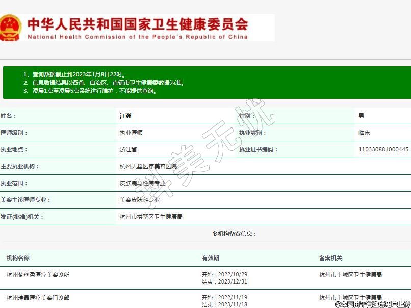 主要執(zhí)業(yè)機(jī)構(gòu):杭州天鑫醫(yī)療美容醫(yī)院