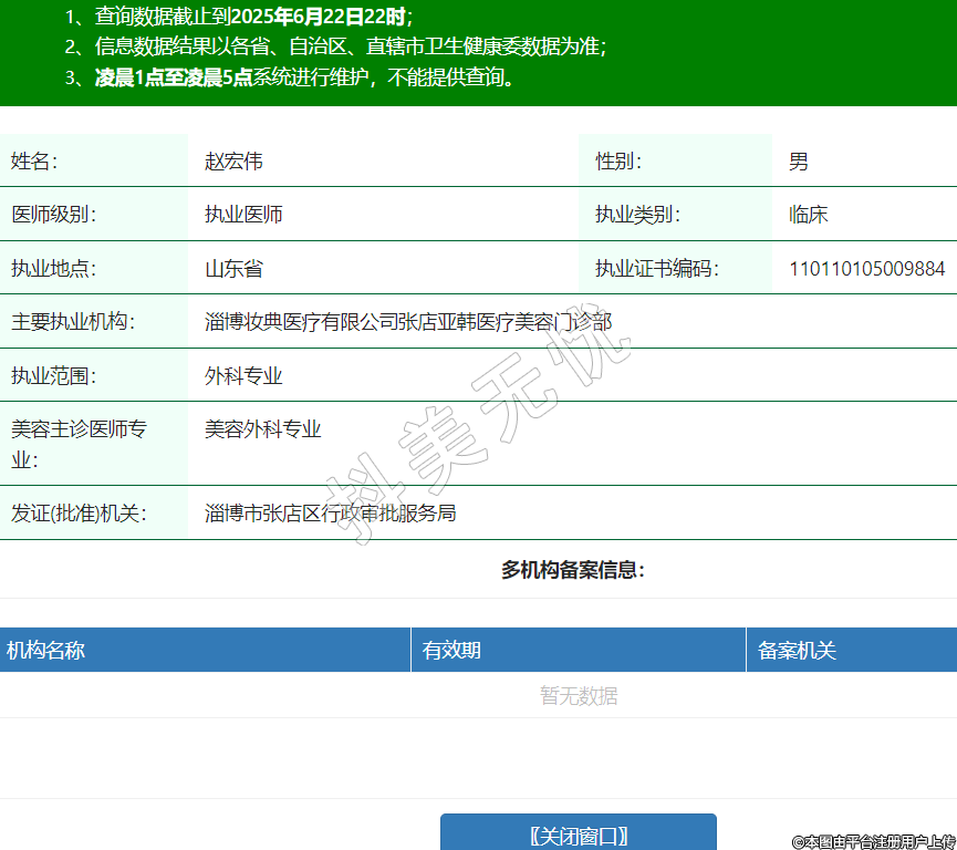 姓名:趙宏偉性別:男醫(yī)師級(jí)別:執(zhí)業(yè)醫(yī)師執(zhí)業(yè)類別:臨床執(zhí)業(yè)地點(diǎn):山東省執(zhí)業(yè)證書編碼:110110105009884主要執(zhí)業(yè)機(jī)構(gòu):淄博妝典醫(yī)療有限公司張店亞韓醫(yī)療美容門診部執(zhí)業(yè)范圍:外科專業(yè)美容主診醫(yī)師專業(yè):美容外科專業(yè)發(fā)證(批準(zhǔn))機(jī)關(guān):淄博市張店區(qū)行政審批服務(wù)局 -