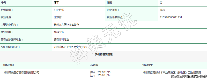 主要執(zhí)業(yè)機構(gòu):蘇州九九醫(yī)療美容診所