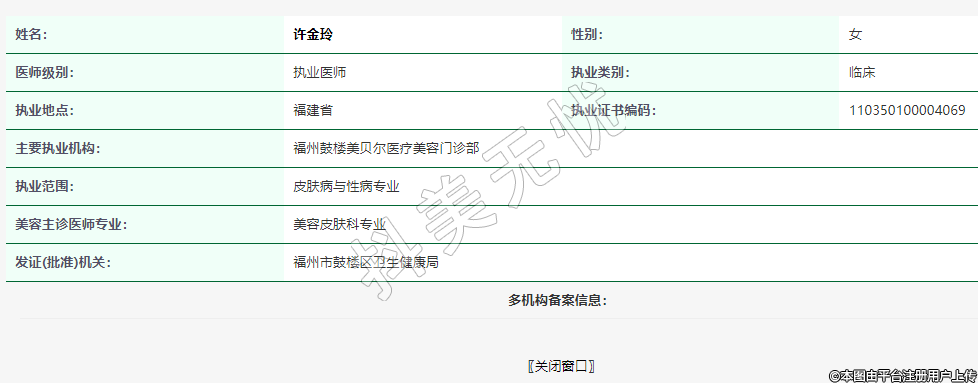 主要執(zhí)業(yè)機構(gòu):福州鼓樓美貝爾醫(yī)療美容門診部