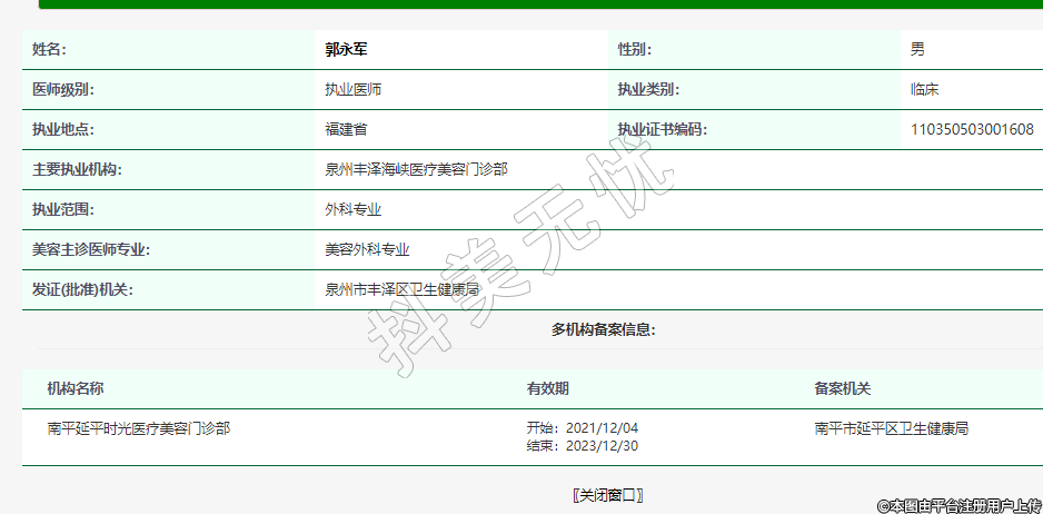 主要執(zhí)業(yè)機構:泉州豐澤海峽醫(yī)療美容門診部