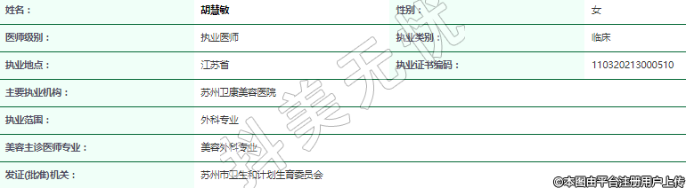 主要執(zhí)業(yè)機構(gòu):蘇州衛(wèi)康美容醫(yī)院