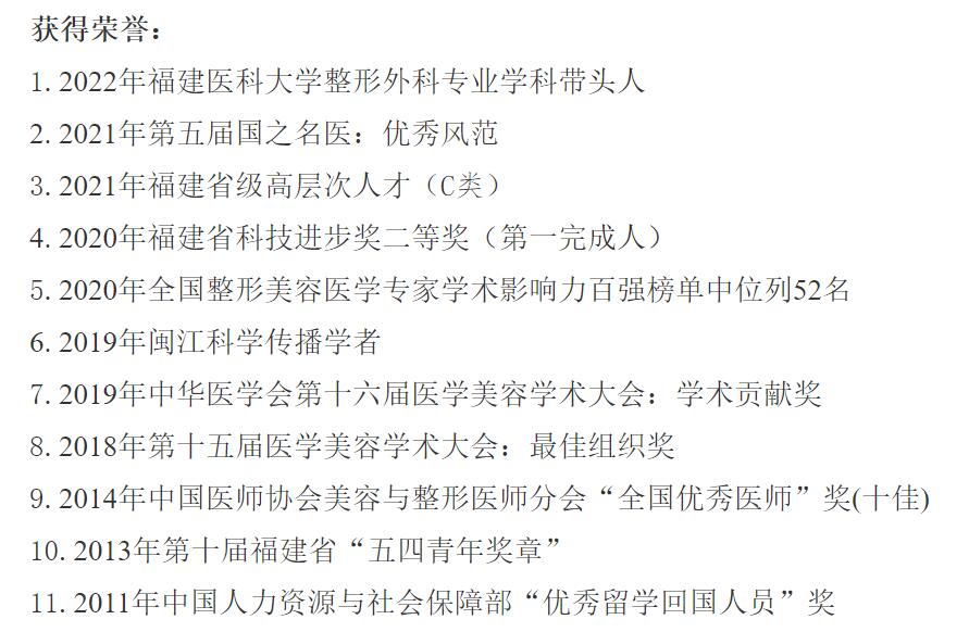 福建省醫(yī)師協(xié)會美容與整形分會黨支部書記副會長