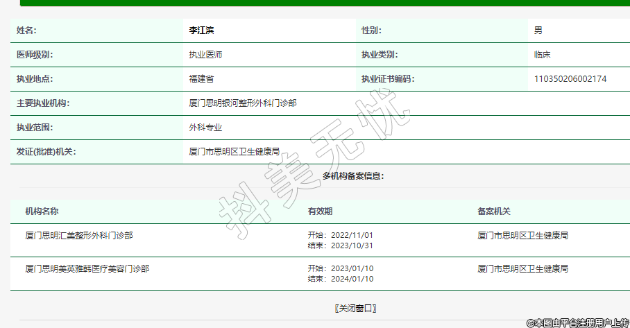 主要執(zhí)業(yè)機(jī)構(gòu):廈門思明銀河整形外科門診部