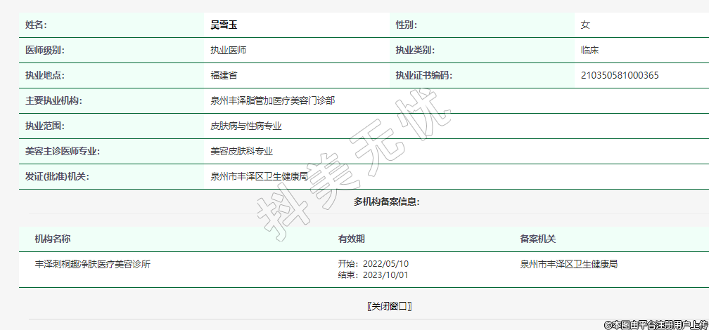 主要執(zhí)業(yè)機構(gòu):泉州豐澤脂管加醫(yī)療美容門診部