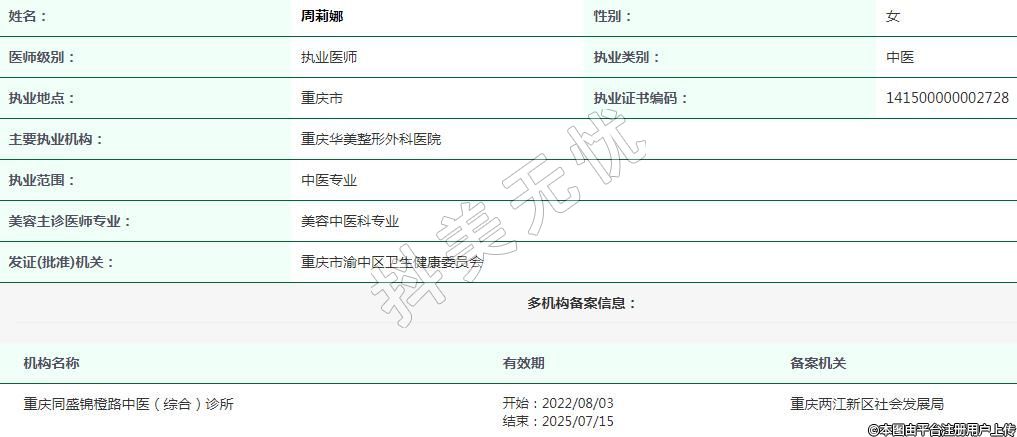 發(fā)證(批準)機關:重慶市渝中區(qū)衛(wèi)生健康委員會